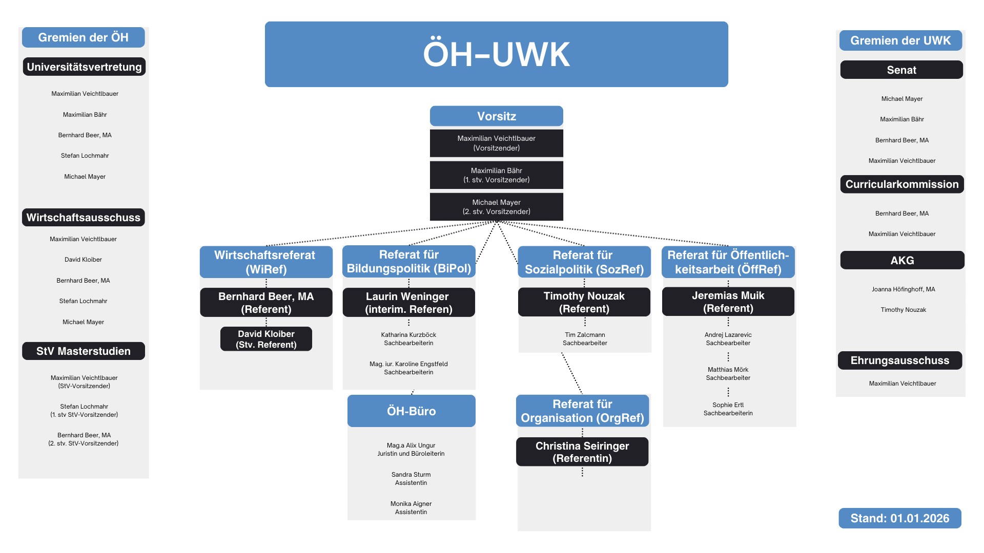 Der Vorsitz und das ÖH-UWK-Büro-Team unterstützt Dich gerne bei Deinen Anfragen und Anliegen!